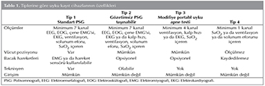 Amerikan Uyku Tıbbı Akademisi "American Academy of Sleep Medicine (AASM)" tarafından, uyku kaydı yapılmasına olanak sağlayan d?rt tip cihaz tanımlanmıştır (3).