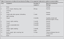 3. Wight loss or failure to gain weight (13). Cough, night sweating and fever were the most frequent symptoms in our patients. Interestingly four of our patients didn't have any symptoms or physical signs. TST positivity and history of contact were reasons for their medical evaluation and lead the diagnosis in these four cases.