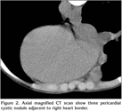 Multiple small cystic nodule adjacent to right sided heart border on pericardium were seen Figure 3.