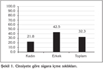 T?m d?nyada oldu?u gibi ?lkemizde de sigara i?me s?kl??? erkeklerde kad?nlara g?re daha y?ksek bulunmu?tur (6,7,8,9,10,11,12,13,14,15). Amerika Birle?ik Devletleri (ABD)'nde 1999 sa?l?k taramas? sonu?lar?na g?re eri?kinlerde toplam sigara i?me s?kl??? %23.5, erkeklerde %25.7, kad?nlarda %21.5 olarak tespit edilmi?tir (12). Orta ve Do?u Avrupa ?lkelerinin bir ?o?unda erkeklerin %50'si, kad?nlar?n %30'u sigara i?mektedir (13). T?rkiye'de erkeklerdeki en y?ksek ve en d???k sigara prevalans verileri Bilir ve arkada?lar?n?n yapt??? farkl? meslek gruplar?nda sigara i?me s?kl?klar?n? de?erlendiren ?al??mada ?of?rlerde %74.3, imam ve m?ezzinlerde %25.1 olarak g?sterilmi?tir (14). ?al??mam?zda da erkeklerde sigara i?me s?kl??? %42.5 olup, kad?nlara g?re (%21.8) anlaml? olarak y?ksek bulunmu?tur (p< 0.05).