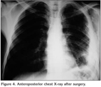 The fourth rib and the posterior part of the third and fifth rib were completely removed, together with a segment of the fourth vertebrate body which was removed by a neurosurgeon, but the dura was not opened. Since the malignant lesion was located mostly below the left scapula, it was not necessary to reconstruct the rib cage. No other mass was observed in other areas of the lungs, mediastinum or the diaphragm.