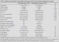 In conclusion, bronchiectasis is a disease with definite local inflammation. We were not able to show any evidence for systemic inflammation in the overall bronchiectasis cohort with respect to controls. However, there were findings suggestive of systemic inflammation in patients with colonization. We believe that colonization with pathogenic microorganisms in bronchiectasis might trigger a cascade of events leading to systemic inflammation, which in turn might contribute to disease progression. Further studies are needed to clarify the presence of systemic inflammation in bronchiectasis patients with different degrees of disease severity and colonization.