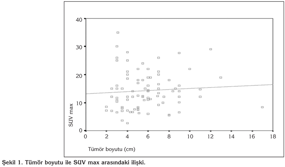 T?m?r boyutunun da, KHDAK'da prognostik bir fakt?r oldu?u kabul edilmektedir (14). Bir k?s?m ?al??malarda, t?m?r boyutu artt?k?a SUV max'?n da artt??? g?sterilmi?tir (15,16,17). Bir ?al??mada t?m?r boyutu ile SUV max aras?nda pozitif korelasyon saptanm??t?r (17).