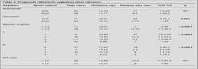Takigawa ve arkada?lar?n?n yapm?? olduklar? 185 olguluk inoperabl KHDAK'l? olgularda kan hemoglobin d?zeyinin > 11 g/dL olmas?n?n iyi prognostik fakt?r oldu?u g?sterilmi?tir (28). Biz ?al??mam?zda kan hemoglobin d?zeyi 12 g/dL'nin ?st?nde olan olgularda sa?kal?m?n ortalama s?resini 10 ay; kan hemoglobin d?zeyi 12 g/dL'nin alt?nda olan olgularda ise 8.5 ay olarak bulduk. Aralar?ndaki fark istatistiksel olarak anlaml? de?ildi (p= 0.086). ?statistiksel anlams?zl???n olgu say?s?yla ili?kili olabilece?i d???n?ld?.