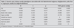 K?MK de?erine g?re ateroskleroz tan?s? konulan hastalar?m?zda ateroskleroza hangi parametrenin en fazla katk? sa?lad???n? bulmak i?in yap?lan multivaryant lojistik regresyon analizinde aterosklerozu etkileyen parametre izlenmedi (Tablo 3).