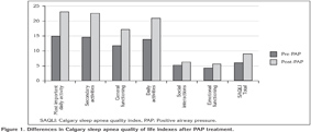 After 30 days of PAP therapy there were statistically significant increases in SAQLI both in domains and total scores. These increases were related with improvements of the symptoms (p= 0.0001) (Table 2) (Figure 1).