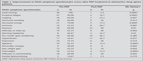 Conclusion: We concluded that the OSA patients can have remarkable benefits from PAP therapy during the early treatment period. This study increased the awareness of the patients about their illness and their perceived benefits related to PAP treatment. Emotional functioning improved prominantly as the disease's severity increased.