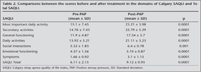 To assess whether the patients had well understood SAQLI questionnaire questions, a-Cronbach coefficients of reliability were calculated. For SAQLI domains and total SAQLI, Cronbach coefficients of reliability were 0.838 and 0.952 respectively. All the scores were above the acceptable ranges.