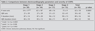 3. Not Rated effective COPD treatment is the effect on P wave axis seems to be a limitation. In fact, it has been reported that effective treatment of COPD might alter the electrocardiographic changes in this disease (14). Verticalization of frontal P-wave axis may be an early sign of worsening of COPD, occurring prior to the onset of electrocardiographic findings such as P-pulmonale and right ventricular hypertrophy. Although the overlap of P wave axis values among groups makes it difficult to determine the severity of COPD simply by ECG, verticalization of frontal P-wave axis, which reflects right atrial electrical activity and strain, can be a useful contributor for the fast prediction of the severity of COPD in an out-patient cared to make a rough assessment.