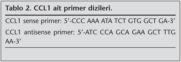 CCL1 genindeki rs159294 T/A polimorfizminin de?erlendirilmesi i?in "www.ensembl.org web" adresi kullan?larak genlerin tam dizilerine ula??ld? ve primer dizayn edildi. Primerler "http://frodo.wi.mit.edu/cgi-bin/primer3/primer3_www.cgi" program? kullan?larak dizayn edildi. Polimorfizmin de?erlendirilmesinde RFLP y?ntemi kullan?l?rken ?zellikle se?ilen enzimin star aktiviteye sahip olmamas? tercih edildi. CCL1 rs159294 polimorfizminin do?rulanmas? i?in DNA dizileme yap?ld?. Bu ama?la ilgili polimorfizm i?in wild, heterozigot ve polimorfik oldu?u RFLP y?ntemiyle tespit edilen ?rnekler polimeraz zincir reaksiyonu (PCR) ile ?o?alt?ld?.