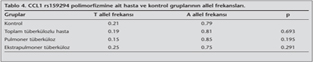 Pulmoner ve ekstrapulmoner t?berk?loz hastalar?nda CCL1 rs159294 T/A gen polimorfizminin ara?t?r?lmas?