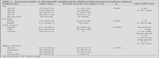 Cinsiyet a??s?ndan gruplar analiz edildi?inde erkeklerde kronik bron?it prevalans? %18.8 iken, kad?nlarda %9 olarak bulunmu? olup, aradaki fark istatistiksel olarak anlaml?d?r (p= 0.007) (Tablo 1). Ayr?ca erkeklerde kad?nlara g?re kronik bron?it olma riski 2.33 kat daha fazla olarak saptanm??t?r (OR 2.33, %95 GA 1.25-4.38) (Tablo 1).