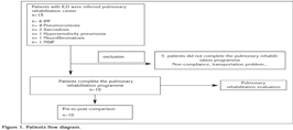Six patients were diagnosed as IPF, four patients had pneumoconiosis (coal worker pneumoconiosis, silicosis, hemosiderosis, dental technician pneumoconiosis), two had sarcoidosis, one had neurofibromatosis, one had hypersensitivity pneumonia and last patient had non-specific interstitial pneumonia (NSIP). Five patients did not complete the pulmonary rehabilitation programme due to not being able to obtain permission from their work, transportation problems, and noncompliance to the pulmonary rehabilitation programme. Demographic characteristics of 10 patients who completed the pulmonary rehabilitation programme are given in Table 1. Patients diagram is shown as a flow diagram in Figure 1.