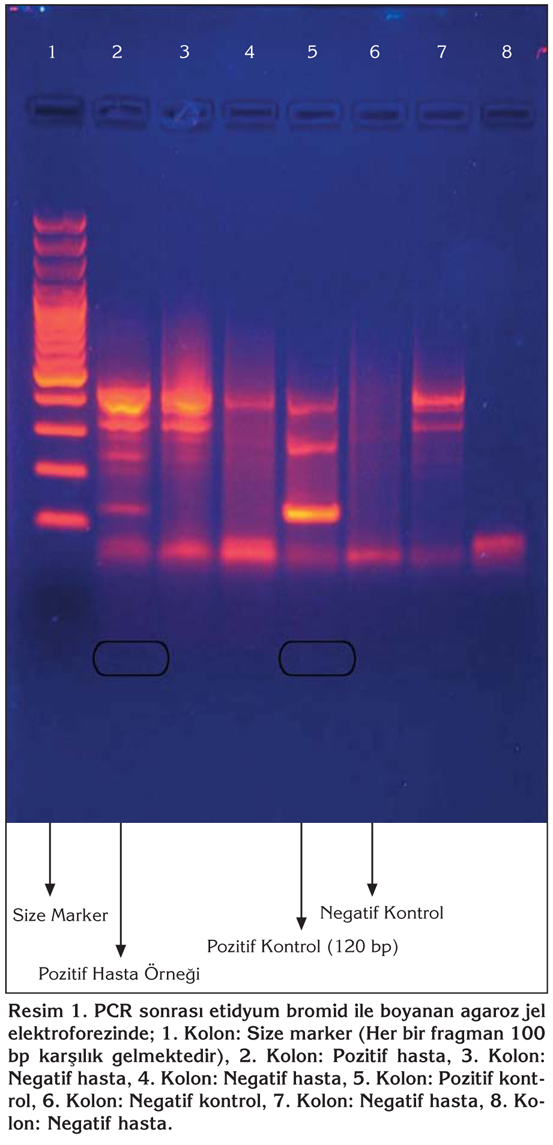 Bantlar? g?r?nt?lemek i?in PCR ?r?nleri ethidium bromid i?eren %1.5'lik agaroz jelde 45 dakika elektroforez i?lemine tabii tutuldu.