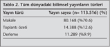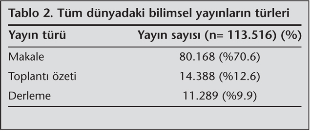 T?m d?nyada yap?lan yay?nlar?n t?r? Tablo 2'de g?sterilmektedir. ?lkemizdeki ara?t?rmac?lar?n kat?lm?? olduklar? ?al??malar?n da %78'inin makale, %4.9'unun ise derleme olarak yay?nland??? saptand?.