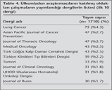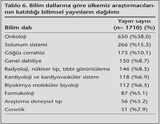 ?lkemiz ara?t?rmac?lar?n?n yay?nlar?n?n kabul oldu?u dergileri inceledi?imizde ilk 10 s?rada ?? adet T?rkiye'de bas?lan dergi g?ze ?arpmaktad?r (Tablo 4). Bu dergilerin ?lkemizde bas?lan SCI-E kapsam?nda dergiler olmas? nedeniyle daha ?ok tercih edildi?ini d???nmekteyiz. Bu yay?nlar?n bilim dallar?na g?re da??l?mlar? Tablo 5 ve Tablo 6'da belirtilmi?tir.