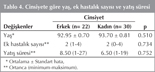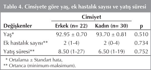 Ya?, ek hastal?k say?s? ve yat?? s?resi bak?m?ndan kad?n ve erkekler aras?nda anlaml? bir fark bulunmad? (Tablo 4).