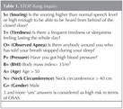 All the patients should be evaluated in terms of OSAS using an OSAS inquiry questionnaire. In the study held 1/4 of the patients questioned were detected to have high risk of OSAS. In this patient group ear, nose and throat examination is important. The existence of examination findings such as micrognathia, retrognathia, adenotonsillar hypertrophy and macroglossia both helps in terms of possible OSAS diagnosis and facilitates having an opinion about possible difficult intubation. It is known that tracheal intubation is harder in patients with OSAS (19). Other basic examination findings in terms of possible OSAS have been presented during STOP-Bang inquiry. It should be kept in mind that comorbidity incidents like ischemic heart disease, obesity, hypertension may be observed in the patients, who were diagnosed as OSAS or found risky in the inquiry; they should be evaluated accordingly, and when needed, demanding a consultation from the related optimal surgeon preparations should be done.