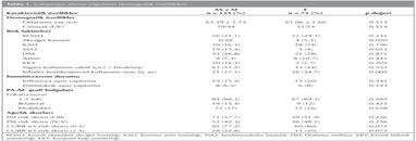Her iki grupta tedavi ba?ar?s?, hastalar?n yo?un bak?m ihtiyac?, otuz g?nl?k mortalite, doksan g?nl?k ve bir y?ll?k mortalite sonu?lar?yla ili?kili olabilecek belirte?leri saptamak amac?yla komorbidite, ba?vuru ?ikayetleri, di?er ba?vuru de?i?kenleri, laboratuvar, radyolojik bulgular, tedavi s?resi, hastal?k a??rl??? tek tek de?erlendirildi?inde istatistiksel olarak anlaml? bir farkl?l?k saptanmad?.