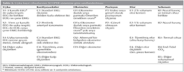 Yukarıda bahsedilen portabl kayıt cihazları, 2011'de AASM tarafından yapılan yeni bir revizyon ile klasifiye edilmiş, kayıt kanal tiplerine ve i?erdikleri teknolojiye g?re kategorize edilmiştir. Bu sistem SCOPER kategorizasyon sistemi olarak adlandırılmıştır (17). SCOPER kısaltması; uyku (sleep), kardiyak ?l??mler (Cardiac measures), oksimetre (oximetry), pozisyon (position), efor (effort) ve solunum (respiration) kelimelerinin başharflerinden oluşmaktadır. Bu sistem sayesinde mevcut PM cihazıyla hangi parametrelerin hangi y?ntemle ?l??lebildiği konusunda daha detaylı tanımlamalar yapılabilmektedir (Tablo 3).
