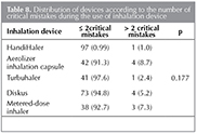 Critical mistakes of the patients in using inhalation devices were evaluated. The rate of having > 2 critical mistakes was not different between the types of devices (Table 8).