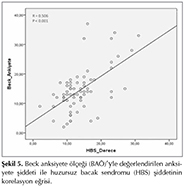 HBS şiddet ?l?eği ile BA? puanları arasında anlamlı ve pozitif y?nl? korelasyon saptandı (p< 0.001, r= 0.506) (Şekil 5).