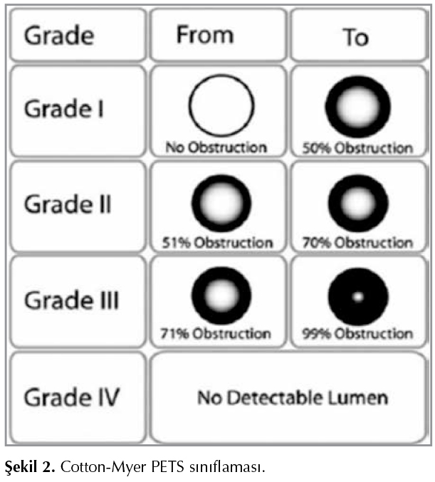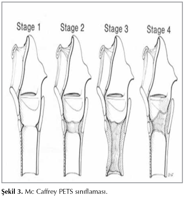 Myer ve arkadaşları yaptıkları sınıflamada bronkoskop ile trakea ?apını karşılaştırmayı tercih etmişken, Mc Caffrey subglottik alana olan mesafeyi ve stenozun trakeadaki uzunluğunu ele alarak sınıflama yapmıştır (Şekil 2,3) (23,24).