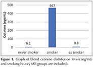 Cotinine is the best indicator which is reflecting active or passive tobacco exposure in individuals and cotinine can be detected in many body fluids which are blood, urine and saliva until a week later. In the studies, cotinine level is thought to be an important determinant in predicting the effects of smoking and assessing the risk of airway obstruction (17,18).