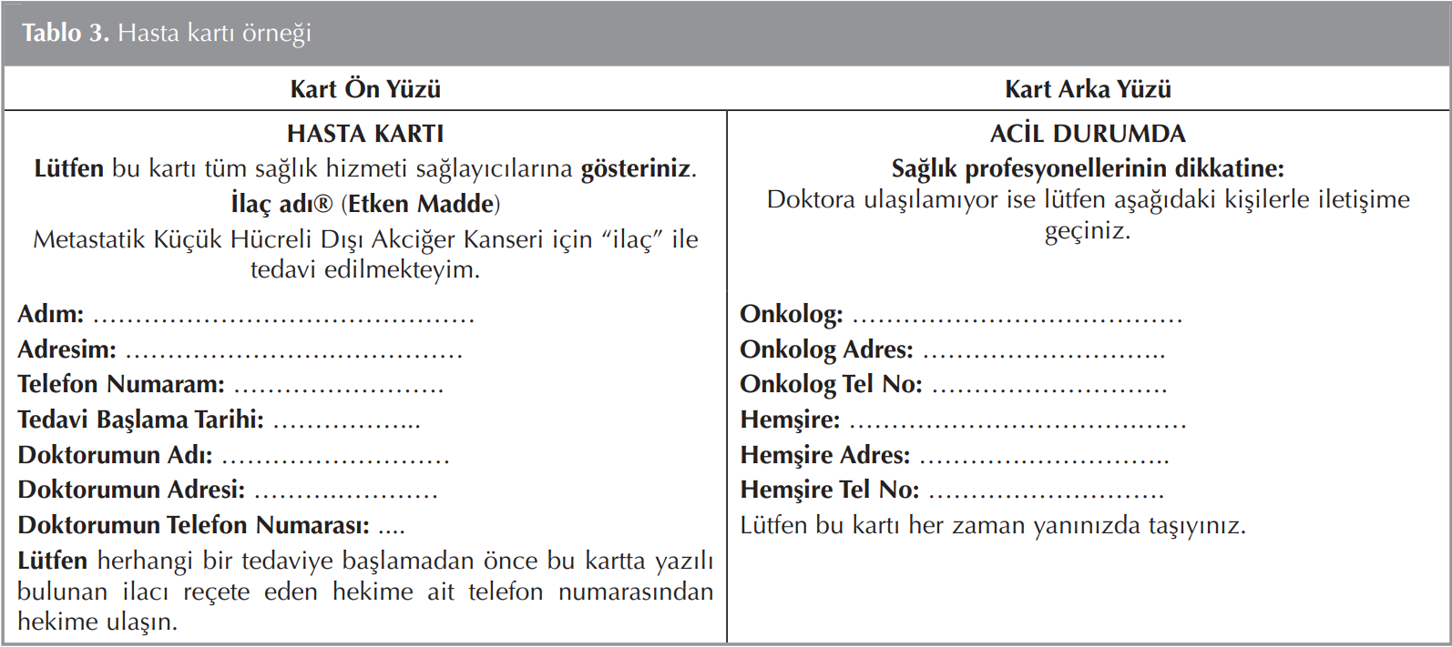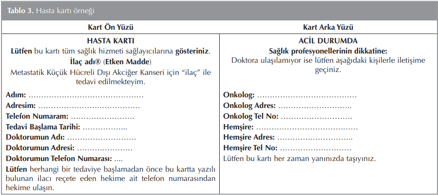 hastalar bilgilendirilmelidir. Hasta kartı örneği